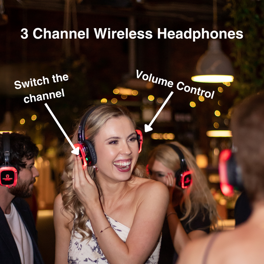 Our silent disco headphones come with two types of transmiters. If you are on the go or are hosting an event somewhere without power select Battery Powered. If you have access to power Standard Power are the way to go.